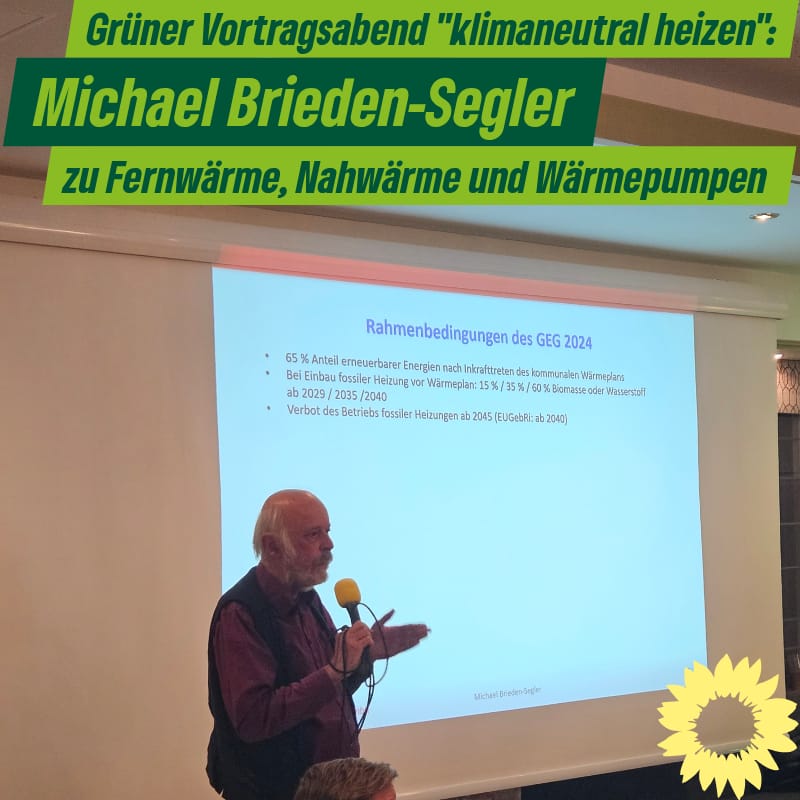 Michael Brieden-Segler, Geschäftsfüher e&u Energiebüro GmbH war auf Einladung der Grünen zu Gast in Warendorf. In seinemVortrag ging es rund um das Thema klmaneutral Heizen und er erklärte eindrucksvoll, warum klimaneutrale Heizlösungen so wichtig für unsere Umwelt und Wirtschaft sind.