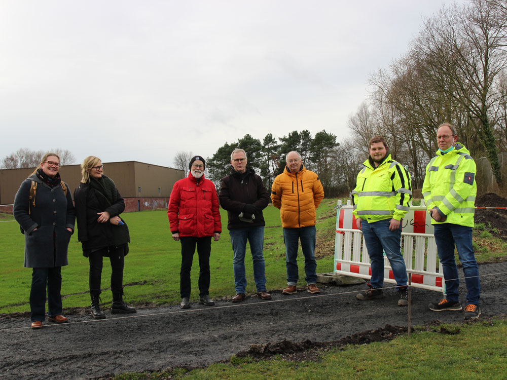 Erfreut über die erste Radwegebaustelle in diesem Jahr zeigte sich die Ratsfraktion von Bündnis 90/Die Grünen. Der Radweg zur Anbindung der Walgernheide/Waterstroate an das Schulviertel wird weitergeführt. Mitglieder der Grünen Fraktion ließen sich von Andreas Steiling, u.a. zuständig im Bereich Tiefbau für Radwegebau und dem Bauleiter Florian Herse (beide von der Stadt Warendorf) vom Fortschritt der Baumaßnahme informieren. “Dieser Radweg ist sinnvoll und wir freuen uns, dass die Planung und Umsetzung konsequent weitergeführt wird“, so Fraktionssprecherin Jessica Wessels. Der vor gut einem Jahr begonnene Radweg wird jetzt in das Schulviertel fortgesetzt. Die Baumaßnahme soll bis zum März fertiggestellt sein und dann auch auf der anderen Seite fortgesetzt werden. „Dieser viel genutzte Radweg wird die Anbindung an das Schulviertel deutlich verbessern“, ergänzt Ratsmitglied Hubert Grobecker.