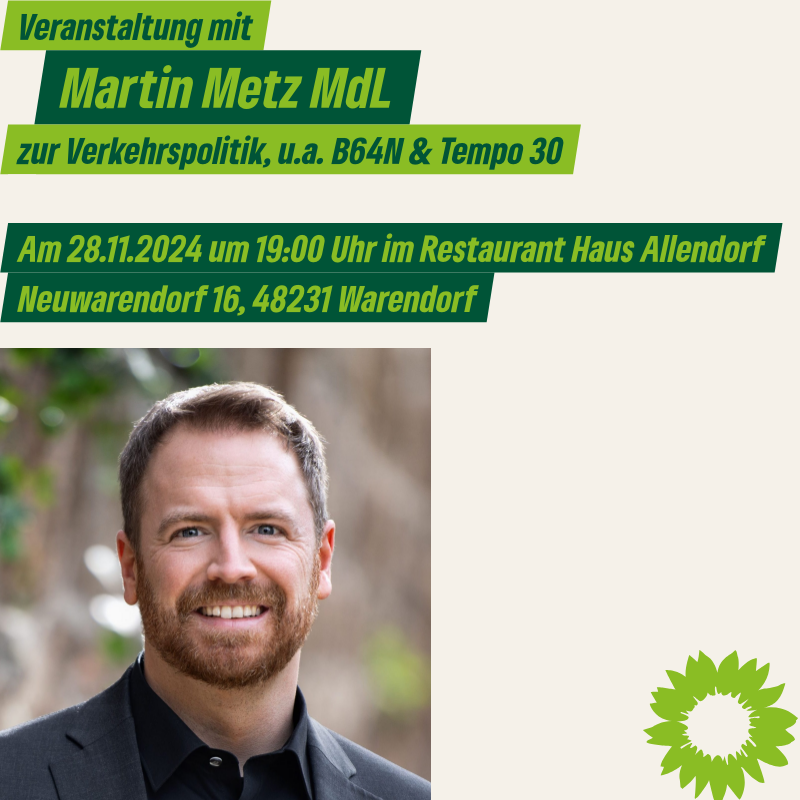 Die Veranstaltung findet in Kooperation zwischen dem Grünen Ortsverband Warendorf und dem Grünen Kreisverband Warendorf statt.